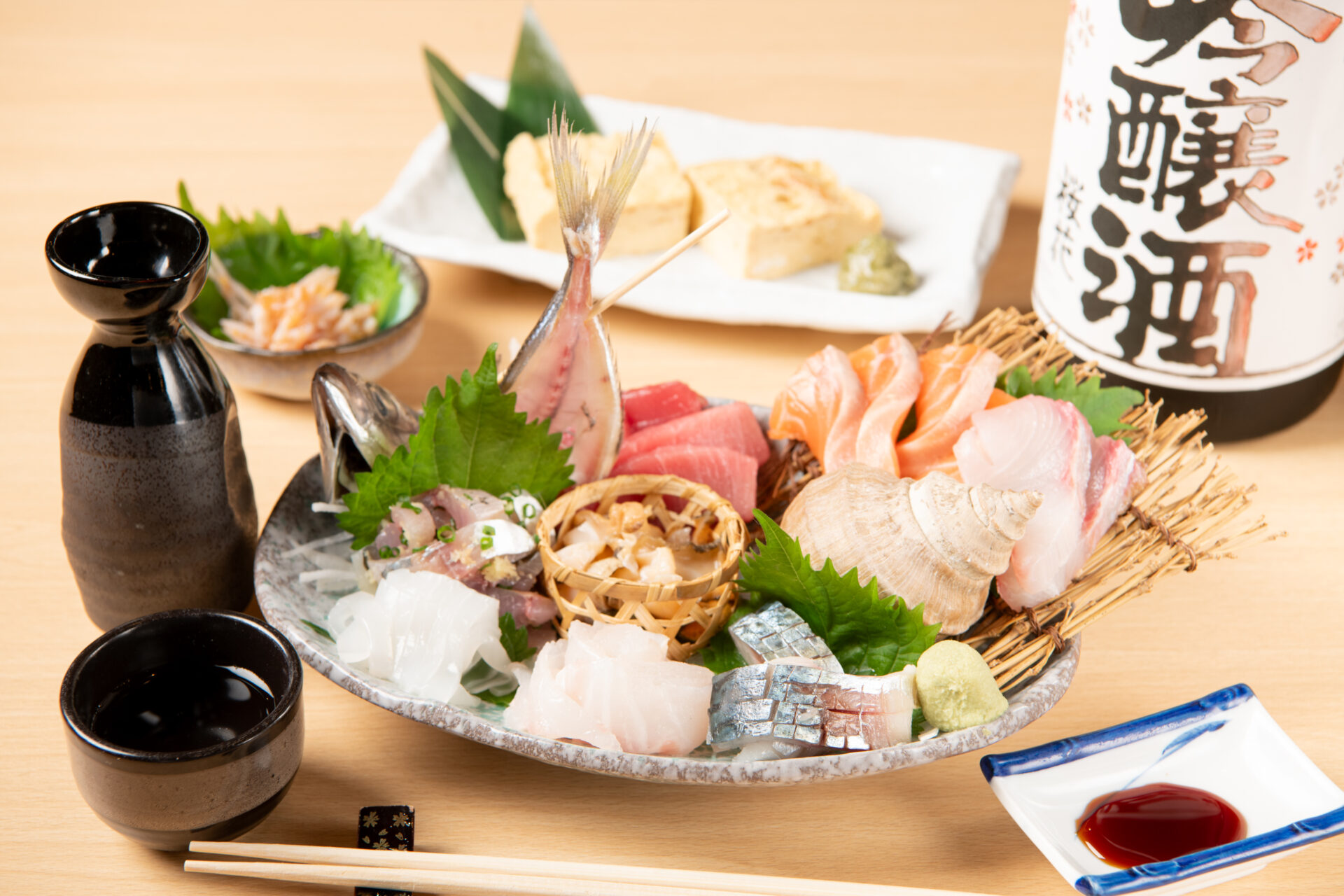 新鮮なお刺身の盛り合わせから煮魚、お寿司、〆のざる蕎麦をご堪能いただけるコースです。