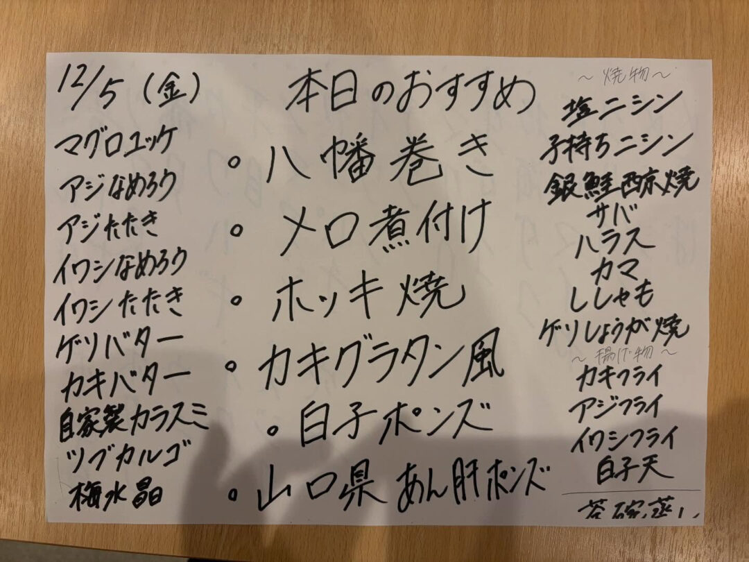 本日のおすすめです✨ 本日のおすすめです✨ ごぼうを穴子で巻いた八幡巻きが本日のイチオシです‼️ カウンター席、テーブル席ご案内可能です ご来店お待ちしております♪ スキル 投稿日 2025年12月5日 ← 本日のおすすめです✨