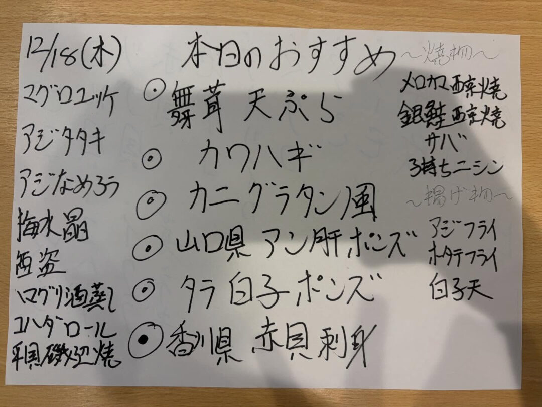 本日のおすすめです✨ 本日のおすすめです✨ カワハギ入荷してます‼️ テーブル席はどの時間帯もご案内可能です ご来店お待ちしております♪ スキル 投稿日 2025年12月18日 ← 本日のおすすめです✨ 本日のおすすめです✨✨✨ →